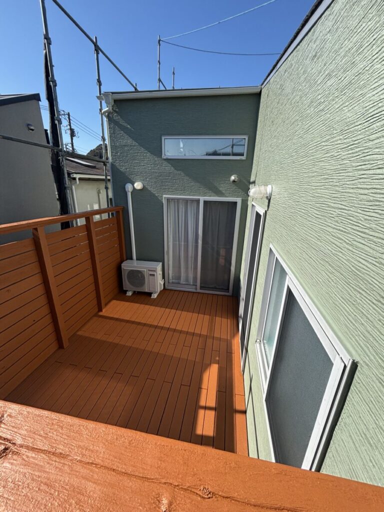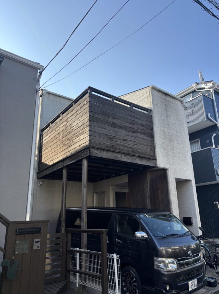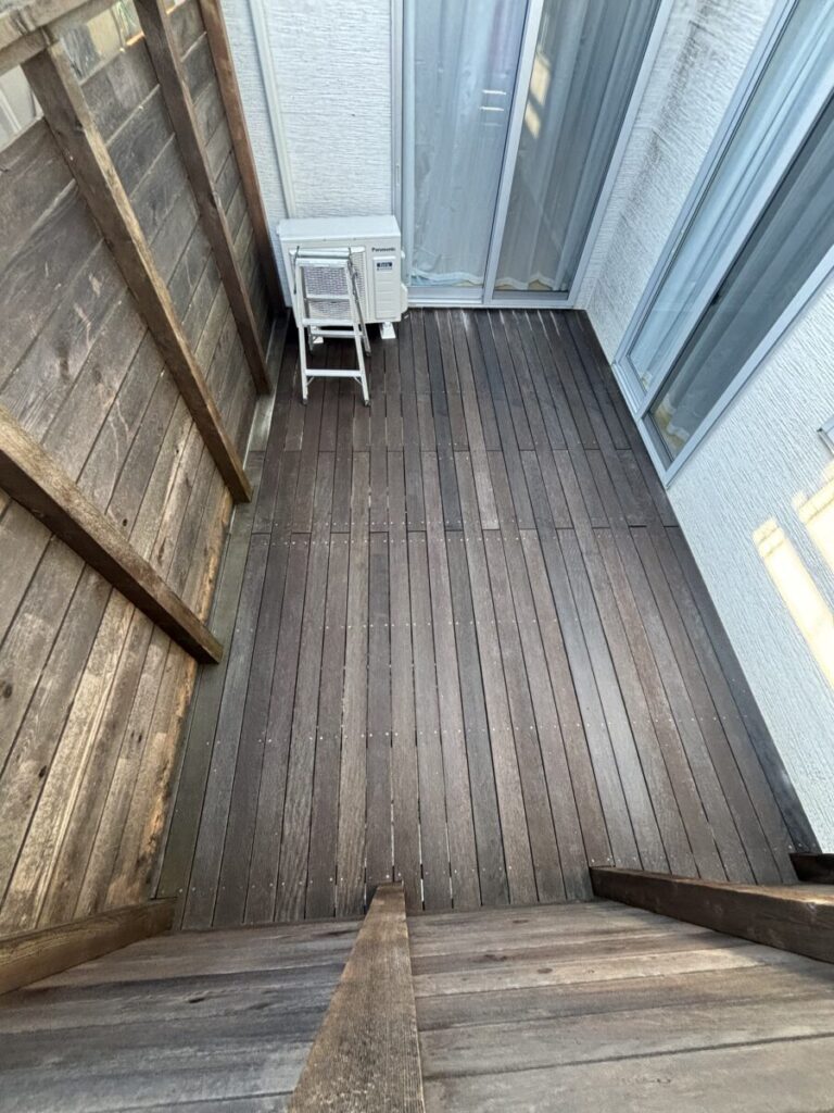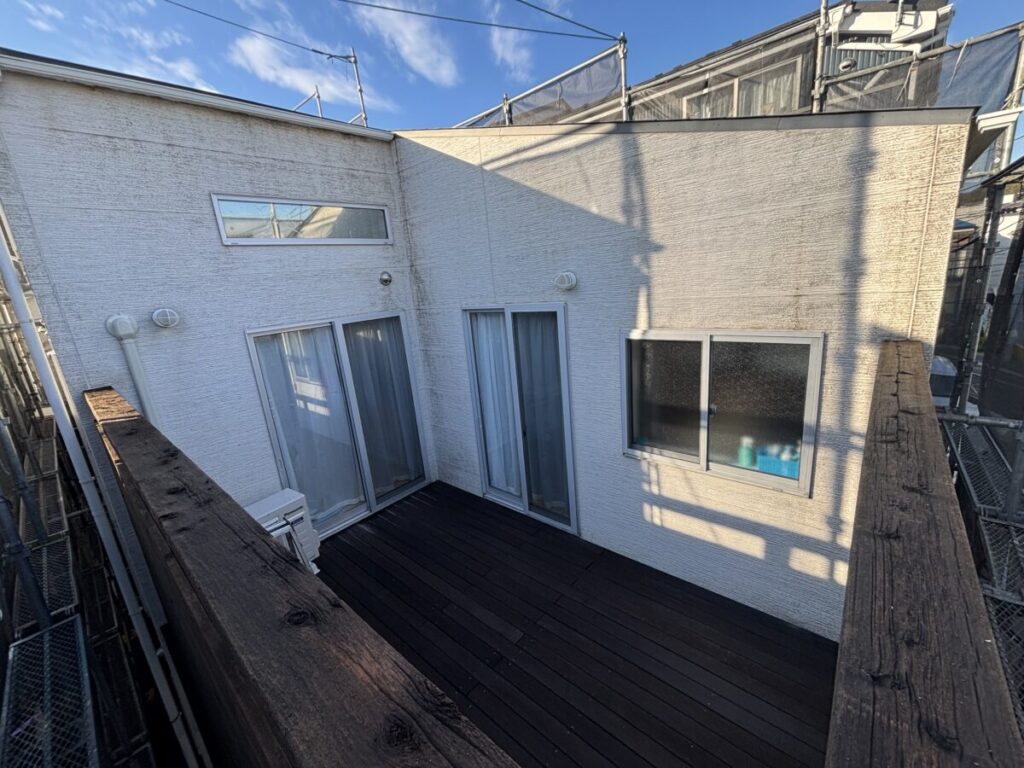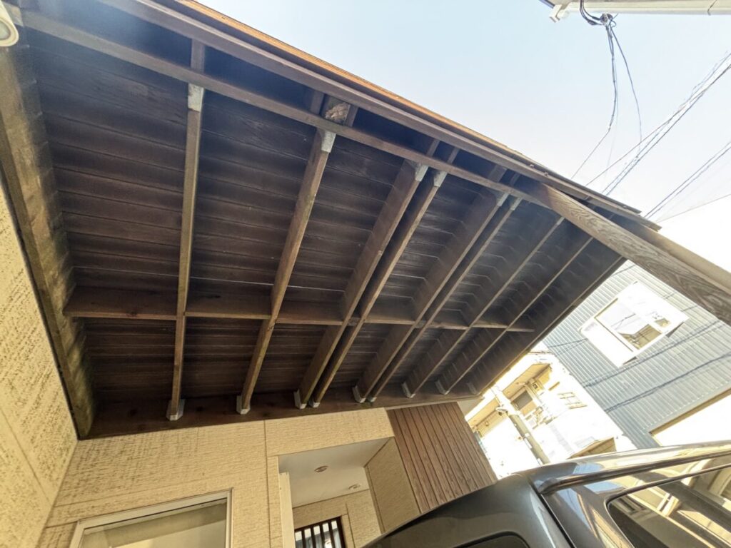 また、バルコニーや軒天などの木部も塗装を行い、木の風合いを活かしながら耐久性を高めました。